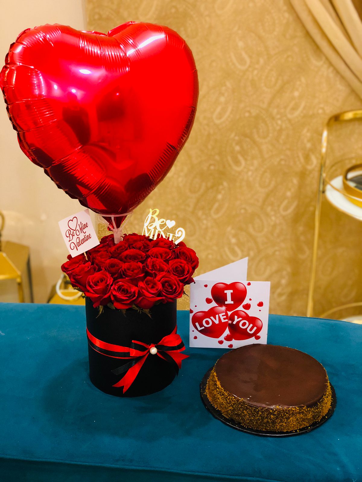 Celebrate love in the sweetest way with our Love Package 8, a delightful ensemble that blends romance, sweetness, and celebration. This package includes a luxurious box of 25 fresh roses, a 2 pounds cake from Kababjees or Delizia, and a romantic foil balloon, all paired with a heartfelt card to make the surprise unforgettable.