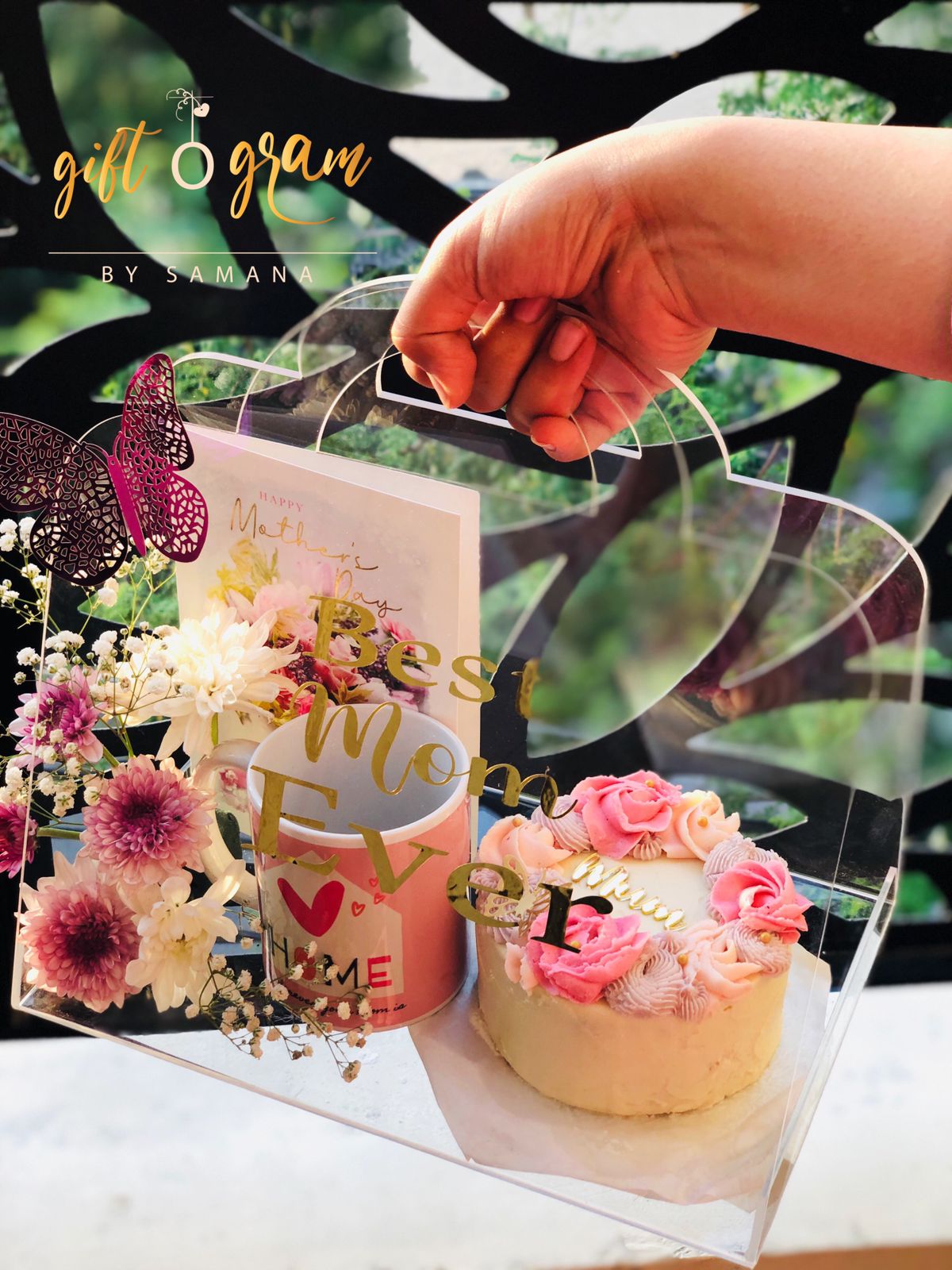Make this Mother’s Day truly unforgettable with our Mother’s Day Package 7, beautifully arranged in a customized acrylic bag. This thoughtful hamper includes a personalized bento cake, a customized mug, a fresh flower bunch, and a special card to express your love.