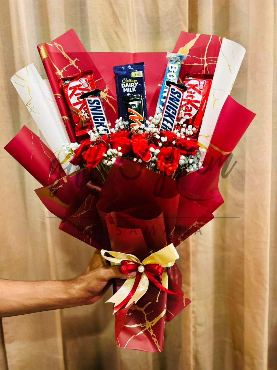 - Mix Chocolates with Roses and Baby's Breath.